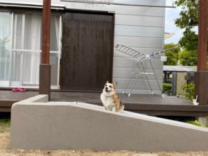 お部屋とお庭をつなぐ、もなかちゃん専用のスロープができてごきげんです(*´∀`*)