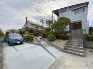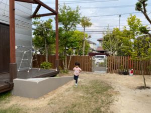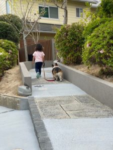 玄関前の階段はパパママの抱っこが必須でしたが、外にもゆる~いスロープを作ったので