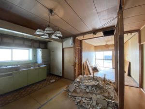 古くなった室内を一部拡張、キッチンも取替え、全面的にリフォームさせていただきます🙇‍♂️