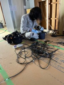 かなりの量の配線に電気屋さんも一苦労です(^^;)