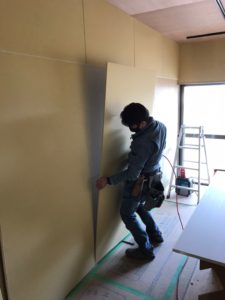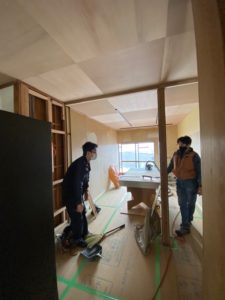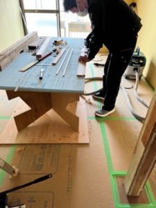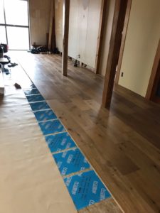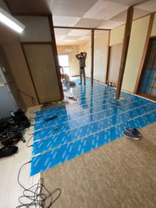 こちらは床暖用の下地材施工の様子です、専用の床材を貼った上に器具を設置していきます(^^)