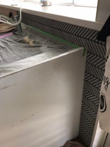 キッチンの立ち上がり部分に今はやりのヘリンボーンのタイルを張らせていただきました!