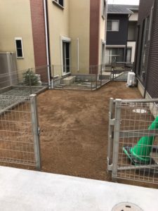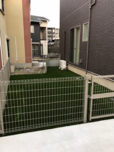 その車庫の奥、デッドスペースになっていた箇所にはフェンスと人工芝でドックランを施工させていただきました!