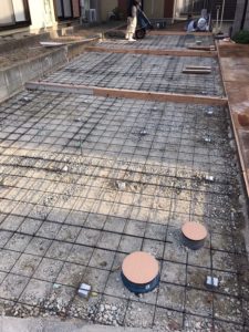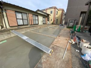 土留のブロックを取り払い、宅地内側まで車庫を拡張、砕石敷きだった床面もコンクリートにて改修。
