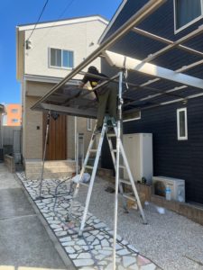 サイクルポートを設置🚴下は防草対策の上、砂利を敷かせていただきました😉