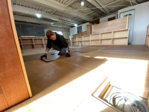 事務所の床も重量物が乗っても問題ない様に、田島ルーフィングの大判シートを採用させて頂きました。